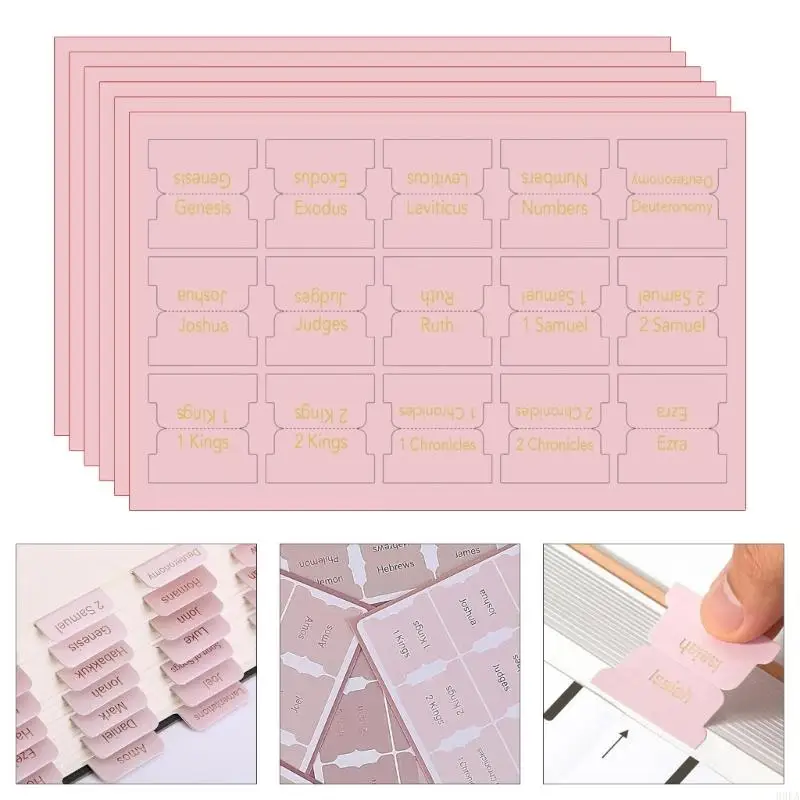 6 Sheets Pink Bible Tabs for Women Men Large Print Stickers Bible Index Tabs Laminated Bible Tabs Easy to Read and Apply